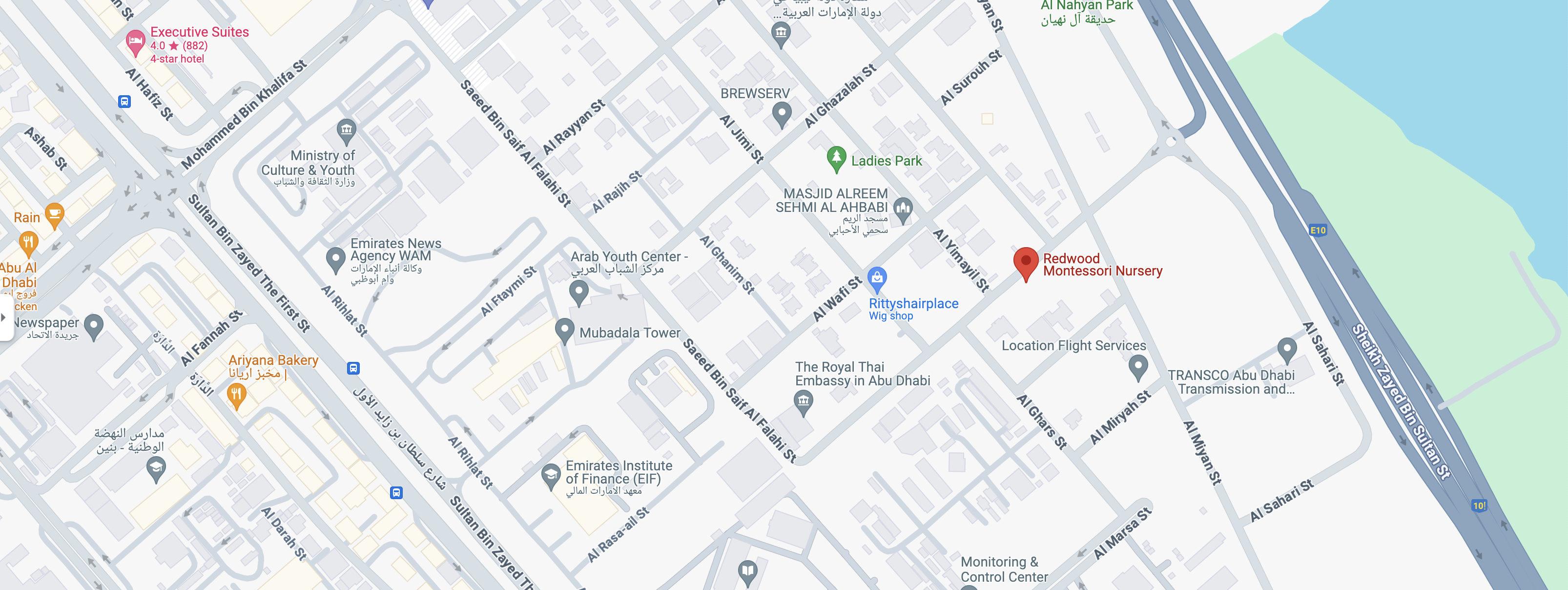Nestled in the family-friendly Al Nahyan neighborhood, our nursery is surrounded by villa-style homes and just a short walk from Al Wahda Mall, offering a variety of shops and eateries. The area features cozy dining spots and is close to the natural beauty of Mangrove National Park, providing a perfect blend of convenience and nature for enriching your child’s early learning experience.
