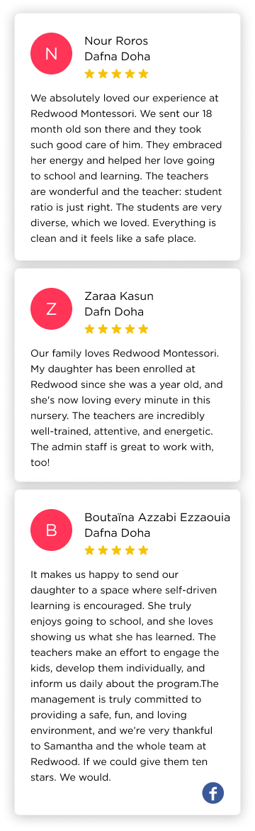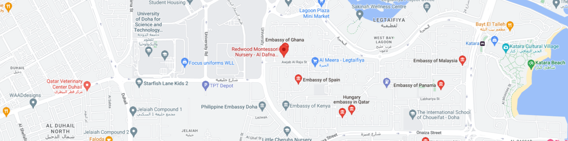 Redwood Montessori Nursery, Al Dafna, is ideally situated in the sought-after Westbay Lagoon/Legtaifiya area of Doha, offering seamless access to both Lusail and The Pearl.